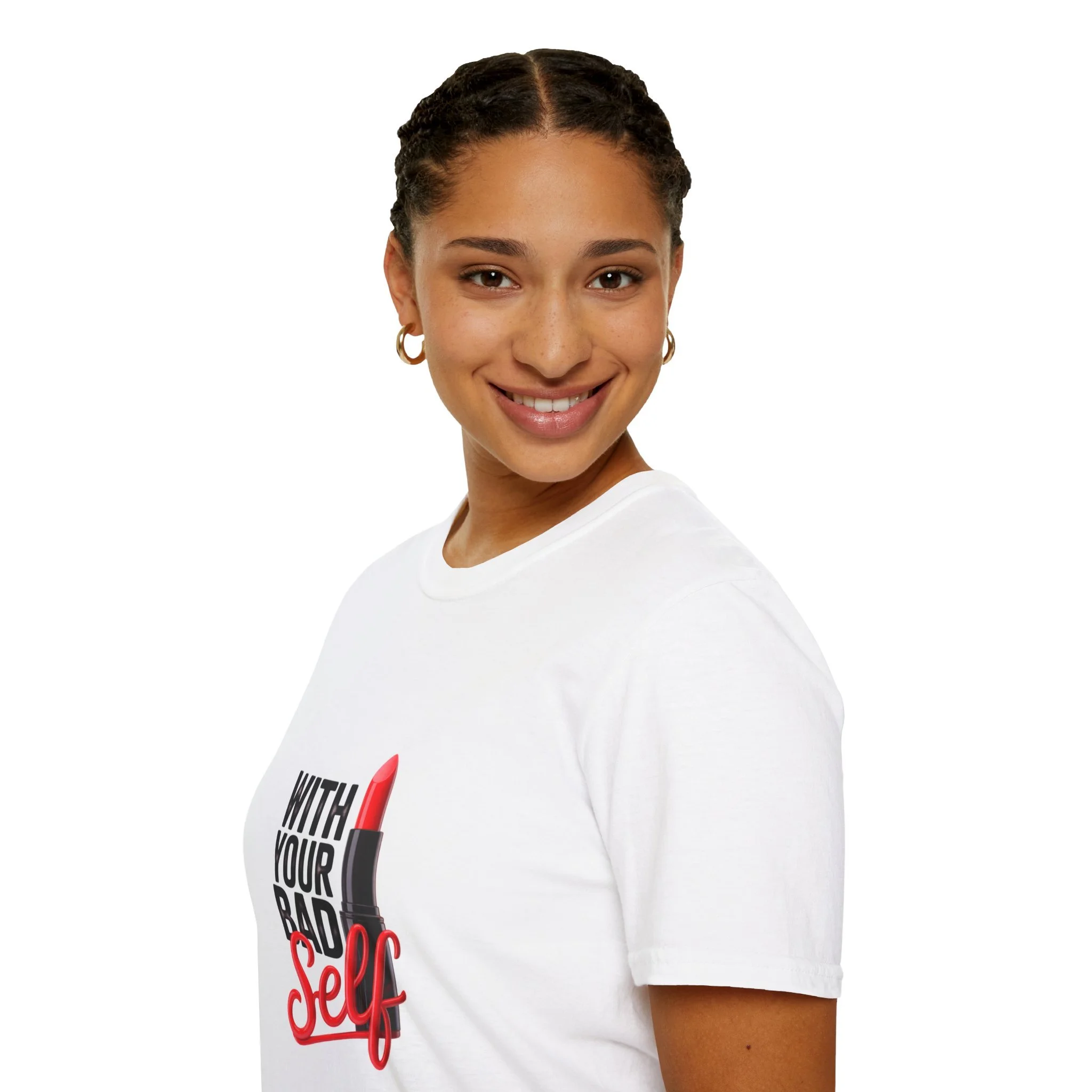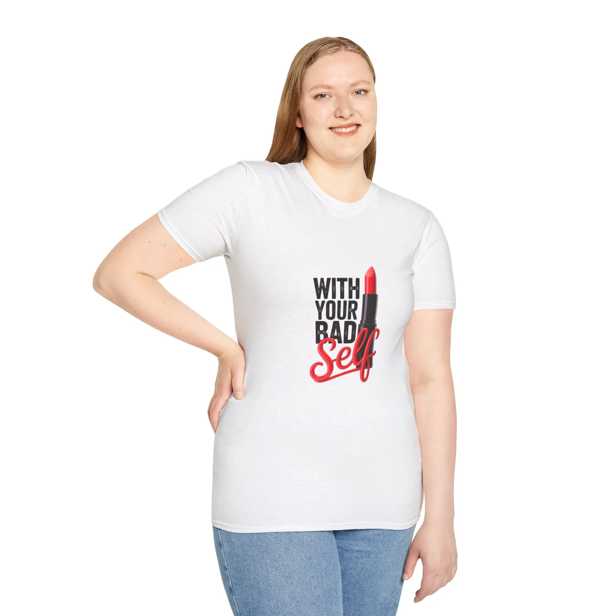 Merch Merch With Your Bad Self Lipstick T-Shirt from $32.99 View Options T‑Shirt — Vintage Poster 'With Your Bad Self' Graphic Tee from $27.99 View Options With Your Bad Self Graphic T-Shirt — Funny Retro Text Tee from $22.42 View Options Hoodie — "With Your Bad Self" Lipstick Graphic Hoodie from $35.97 View Options With Your Bad Self Mug — 15oz Red Lipstick Coffee Cup $21.99 Add To Cart Added! Tote Bag — "With Your Bad Self" Lipstick Graphic Tote from $21.99 View Options T‑Shirt — "With Your Bad Self" Lipstick Graphic Tee from $26.99 View Options Bookmark $11.99 Add To Cart Added! Accent Coffee Mug, 11oz $15.99 View Options Ladies' V-Neck T-Shirt $29.99 View Options Tote Bag (AOP) $26.33 View Options With Your Bad Self lipstick design Bookmark | cosmetic typography reading accessory $13.99 Add To Cart Added! Spiral Bound Journal $18.99 Add To Cart Added!