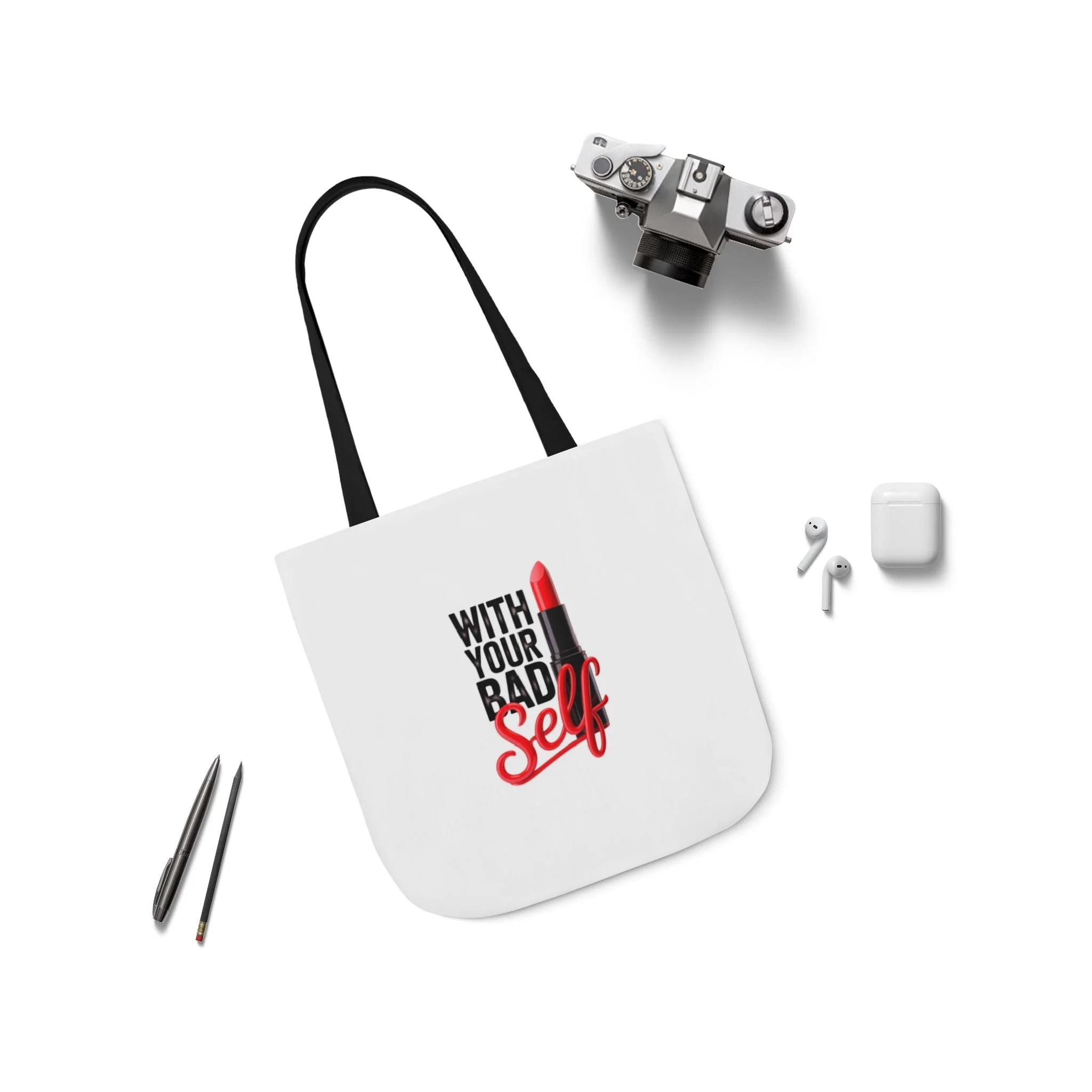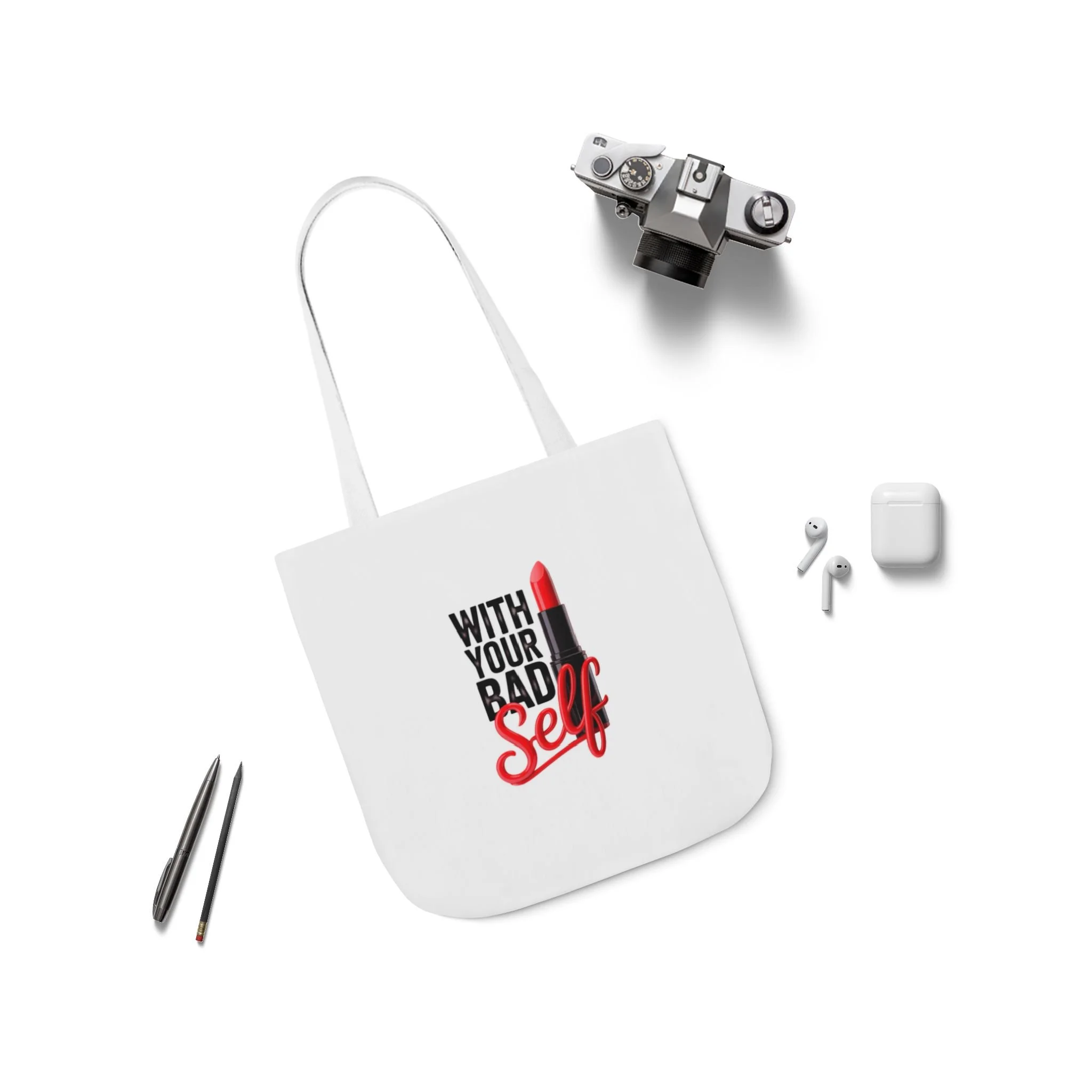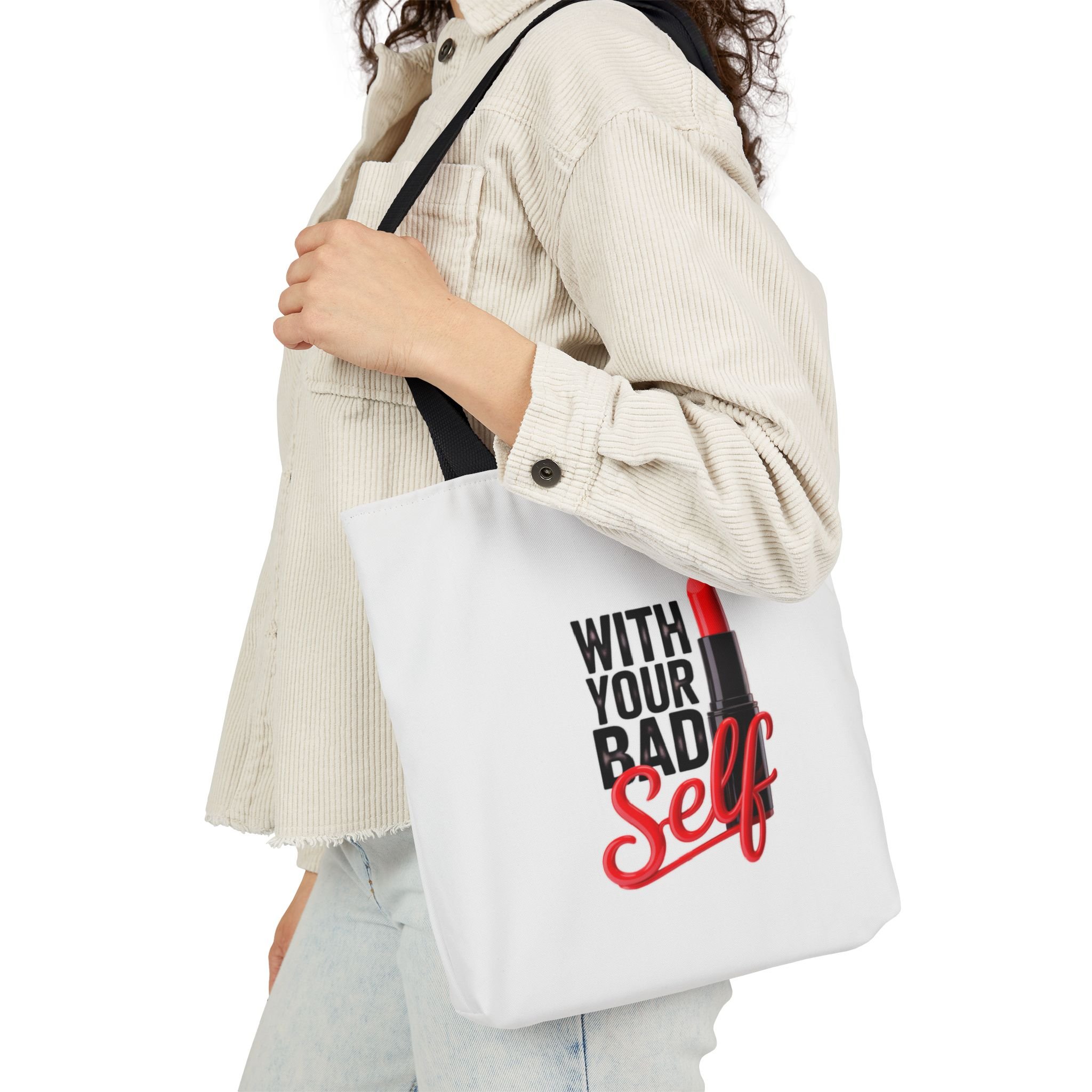 Tote Bag — "With Your Bad Self" Lipstick Graphic Canvas Tote